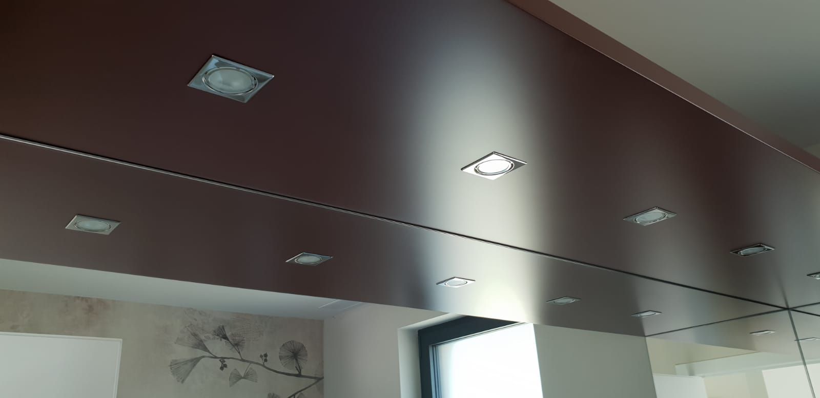 A sormontare il tutto abbiamo installato una mensola di spessore di cm.4 in cui abbiamo incassato dei faretti a led quadri. La mensola profonda cm.51 e lunga oltre due metri è stata opportunamente fissata dai nostri abili montatori con sistemi a scomparsa che negli anni impediranno al materiale di flettere.