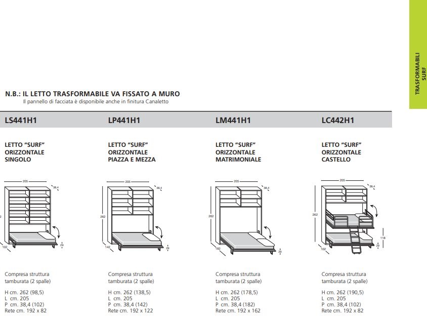 Surf permette di arredare le case di piccole dimensioni o personalizzare una camera multifunzionale. Soluzioni intelligenti risolvono ogni problema di spazio e si adattano ad ogni situazione: giorno e notte, salotto, scrittoio, pranzo.