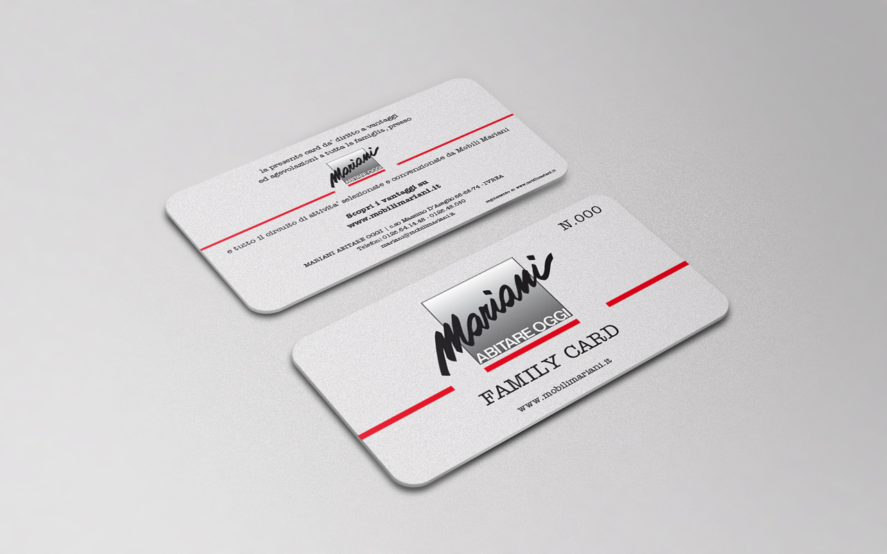 Con la Family Card riceverai periodicamente le e-mail di Mariani Abitare Oggi che ti informeranno sulle agevolazioni e sugli eventi in programma riservati ai soli titolari della card.