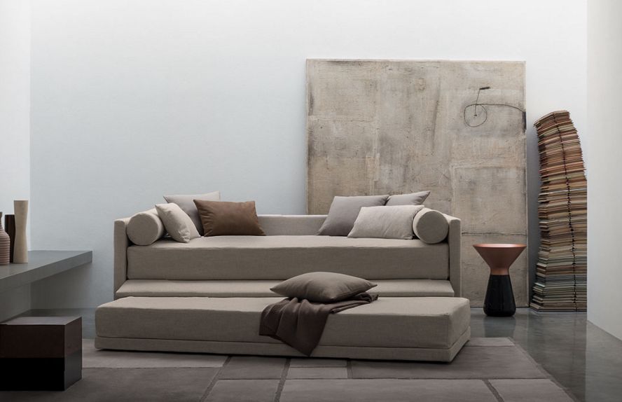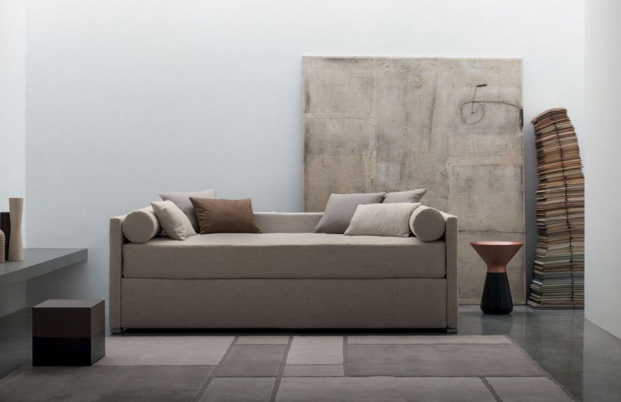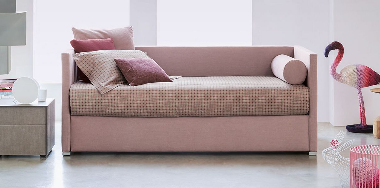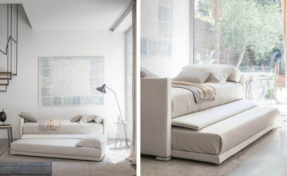 Biss disegnato da Pinuccio Borgonovo è un letto singolo versatile, disponibile in due versioni: base con contenitore salvaspazio oppure base con apertura laterale per alloggiare un secondo letto a scomparsa. Nella prima il letto è dotato di base contenitore con apertura laterale (destra o sinistra secondo esigenza). Nella seconda la base del letto ha uno dei lati apribile (destro o sinistro secondo esigenza), per ospitare un secondo letto. Quest’ultimo, privo di testata, è dotato di ruote che ne facilitano l’estrazione. Può essere sollevato da terra grazie ad un meccanismo con pistoni, oppure restare a livello terra (non sollevabile). Biss accoglie un piano di riposo a doghe regolabili e rivestimenti in tessuto, pelle o Ecopelle sfoderabili grazie al Velcro, ed è disponibile nelle versioni (accessoriabili con schienali alto, basso o sagomato destro o sinistro): A con testata alta; B con testata e pediera alte; C con testata alta e pediera bassa; D con testata bassa; E con testata e pediera basse; F senza testata e senza pediera.