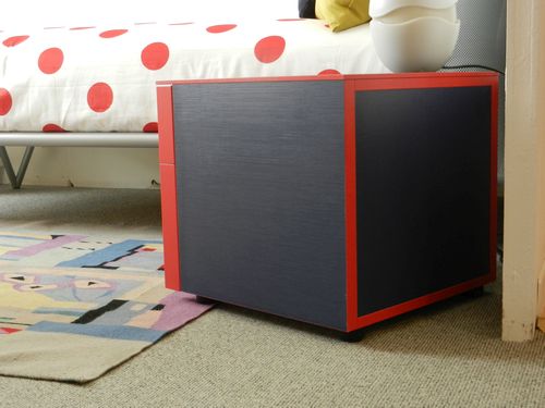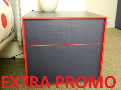 Comodino versione Style trama tessuto colore blu con bordi e maniglie colore rosso
