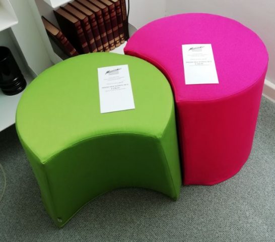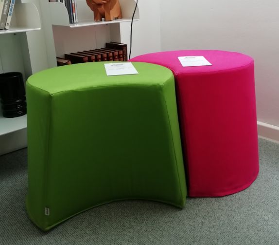 Flou Remy design Riccardo Giovanetti pouf a mezzaluna.