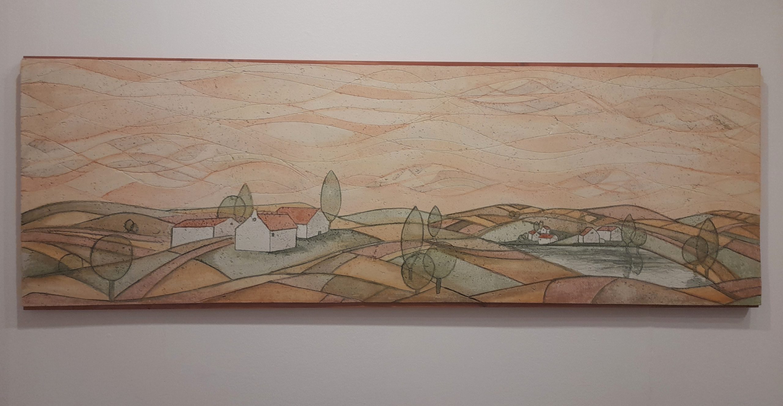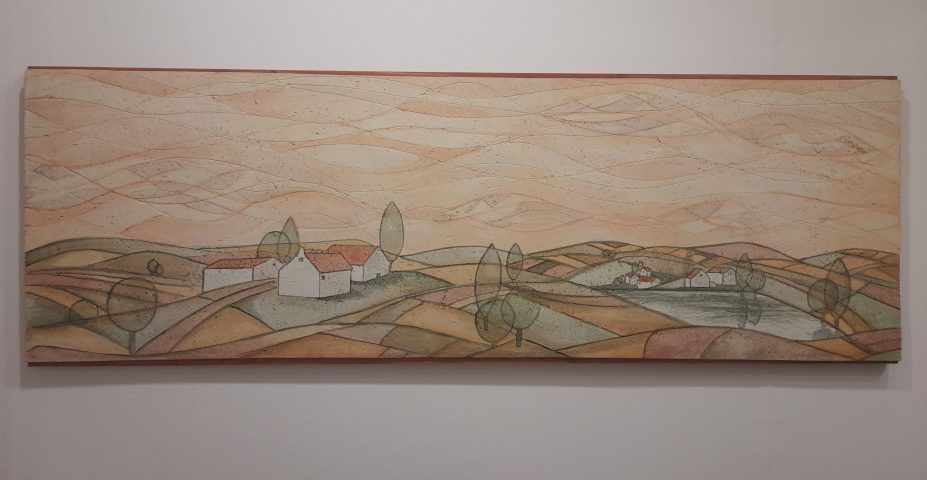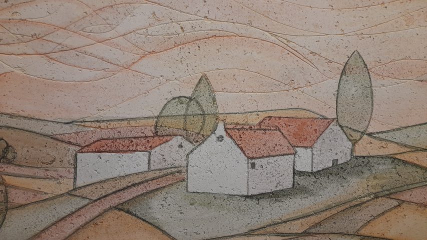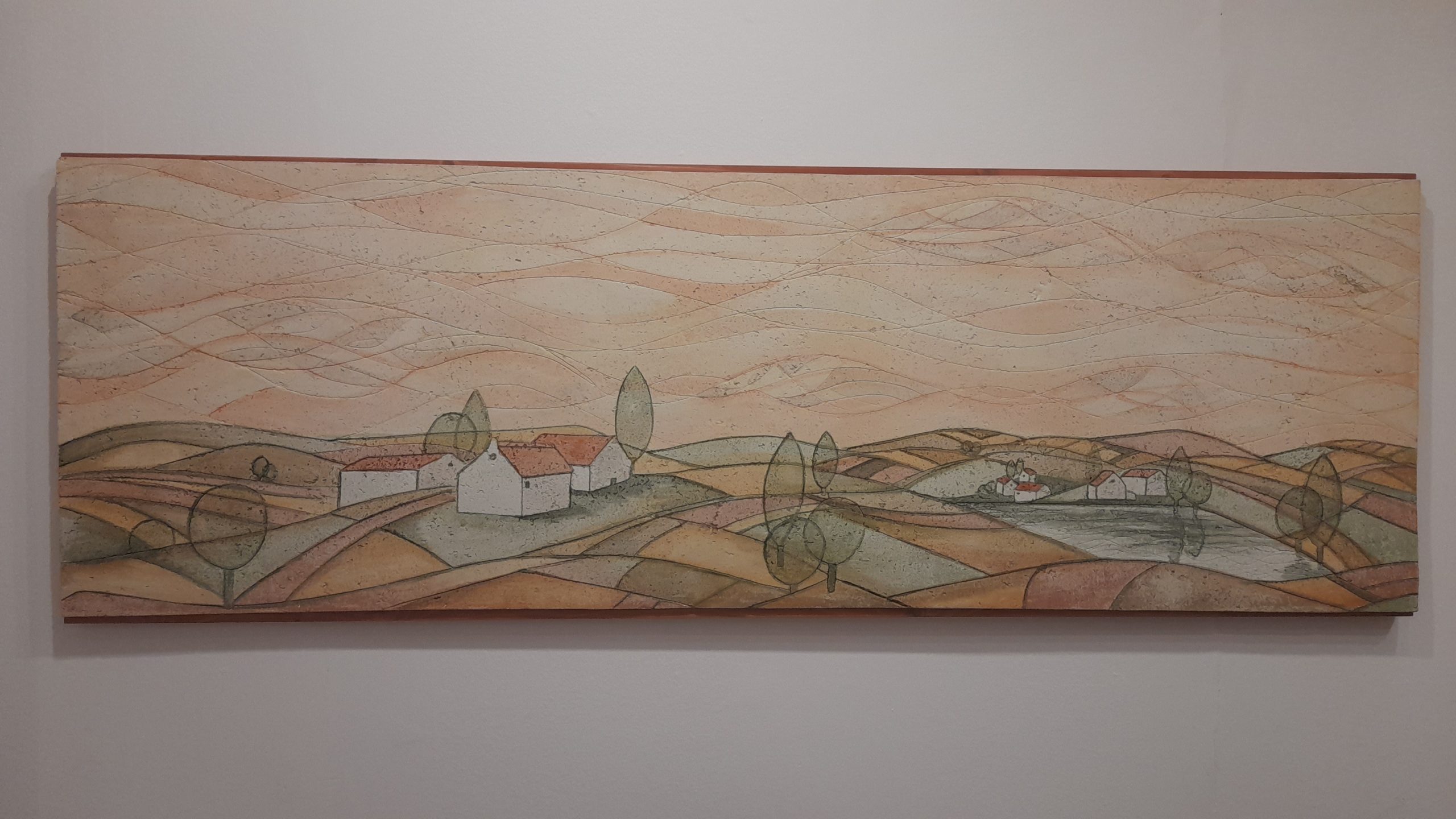 Cadre en bois teinté, support en paperstone sur le thème « Paysage Toscan »