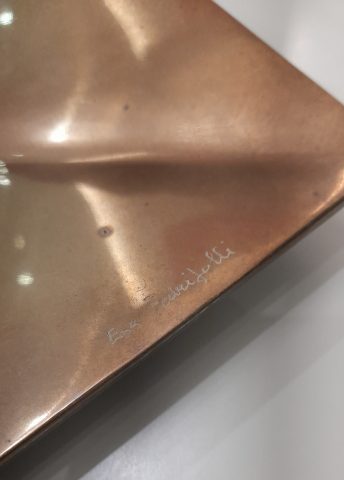 L’utilisation du bronze ajoute une impression de poids et de permanence à la pièce, soulignant la présence de la signature autographe de l’artiste.
