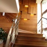 L’éclairage «pas à pas» associé aux lumières LED de la boiserie en bois de teck, réalisées en damier surélevé sur plusieurs niveaux, et la rampe en acier inoxydable «PININFARINA DESIGN», donnent à cet escalier une touche d’élégance raffinée .