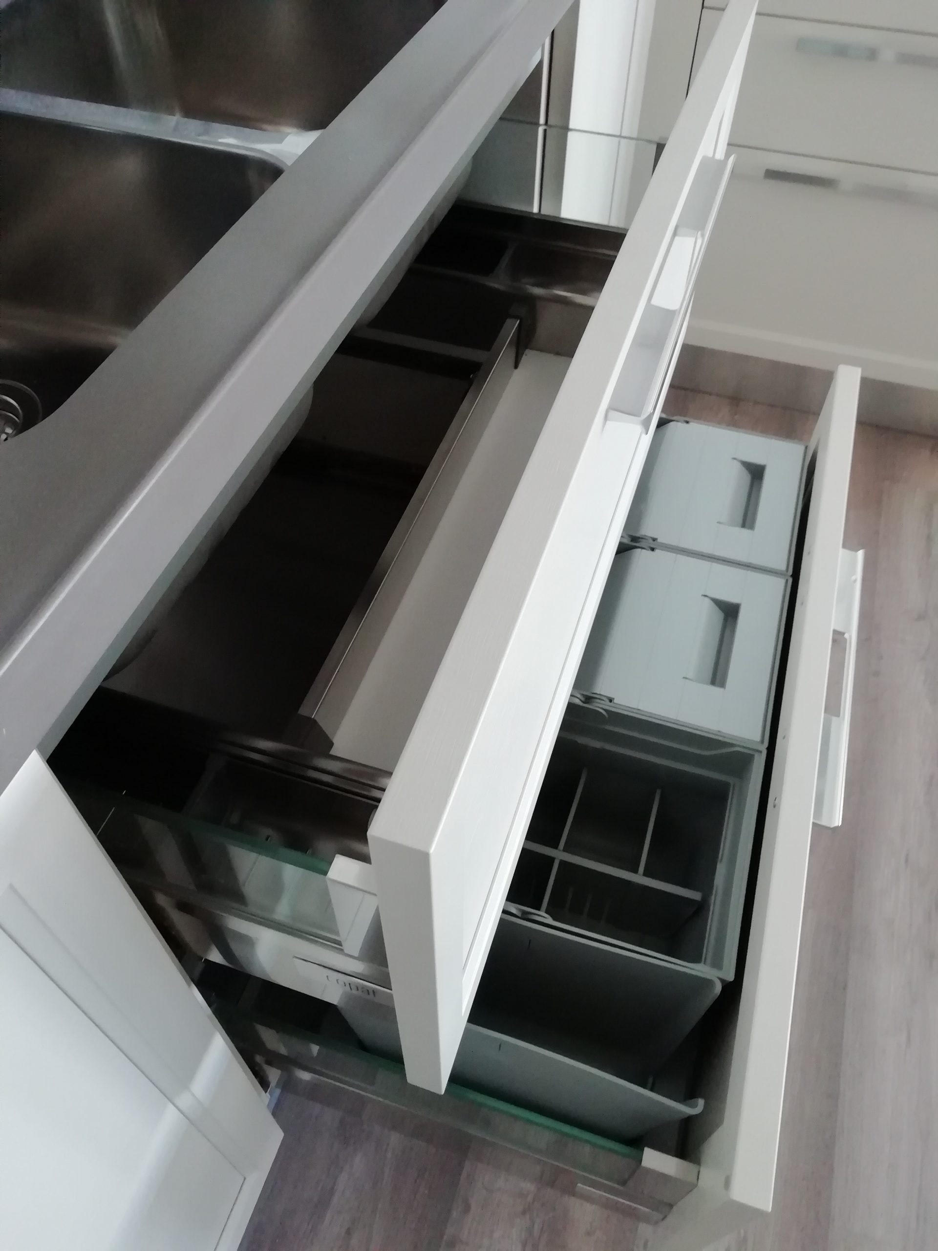 Accessoires : range-couverts cm. 60 en bois massif huilé, kit de collecte séparée des déchets cm. 90
