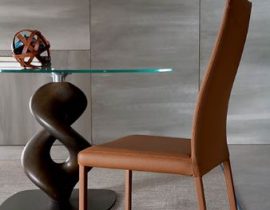 Lunette è una sedia completamente rivestita in pelle naturale. Il suo design logico ed essenziale si armonizza con i tavoli dal design contemporaneo.