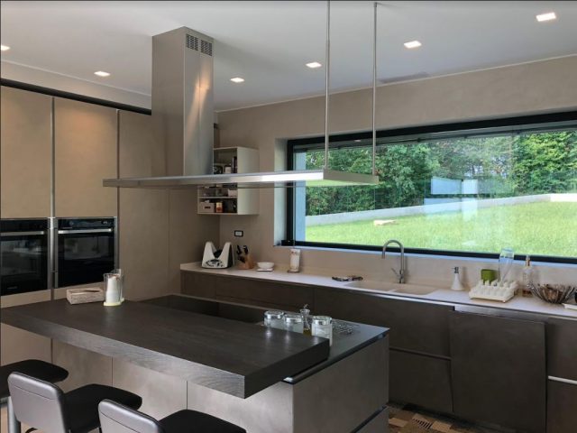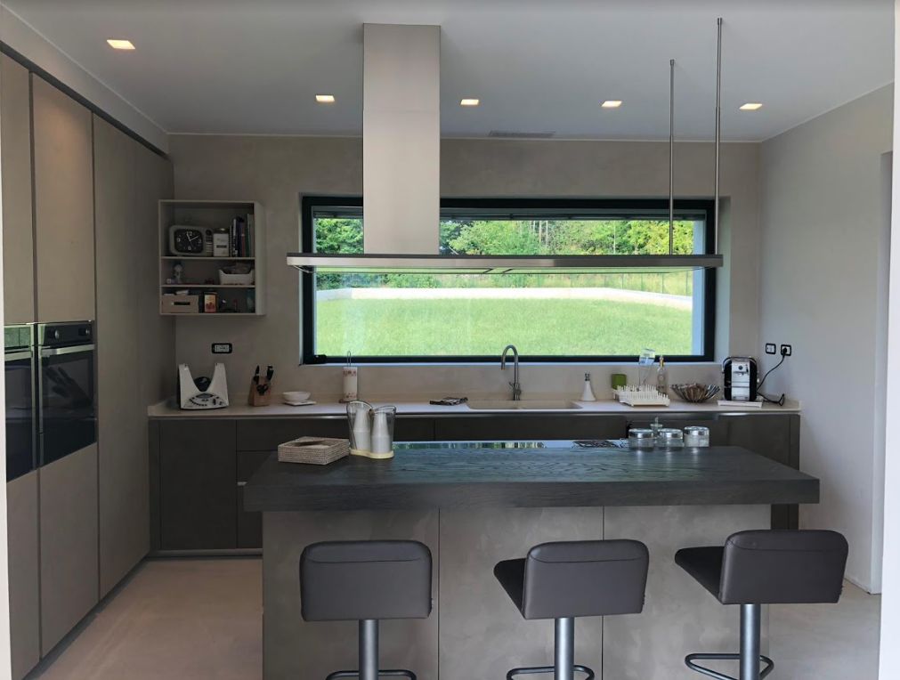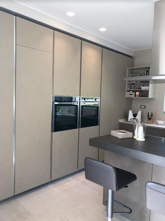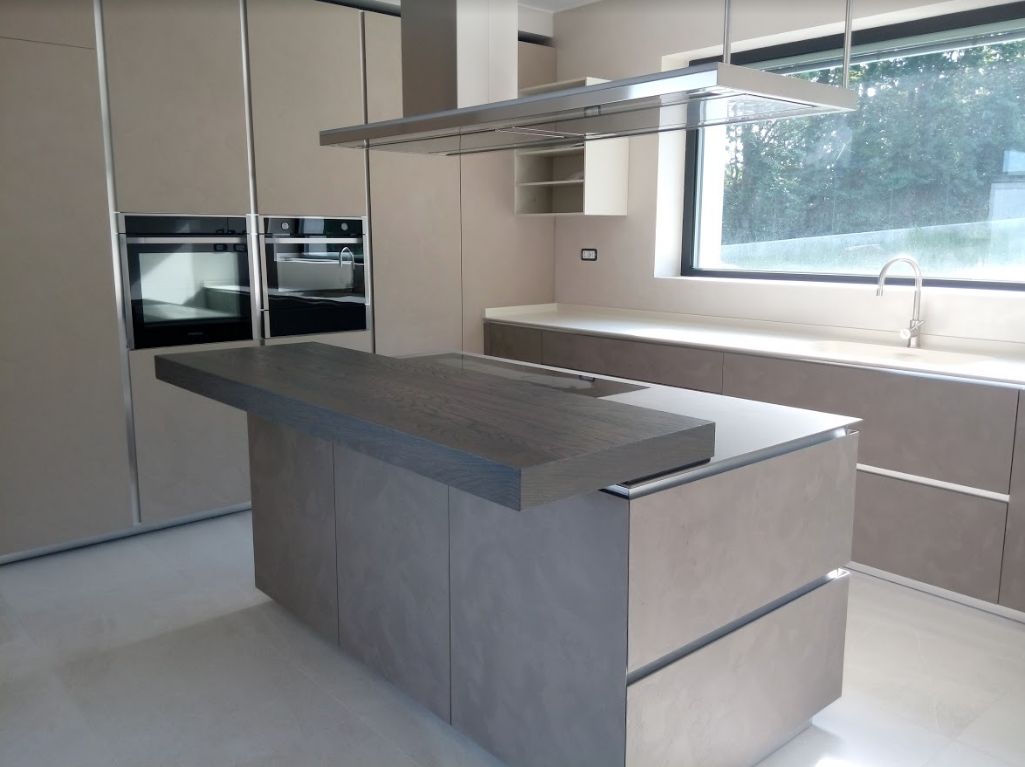 Per la realizzazione di questa cucina è stata scelta la finitura biomalta in spatolato materico che come potete notare dalle immagini, ha un’estetica particolare in quanto la spatolatura rende alla vista il colore “morbido e vellutato”.