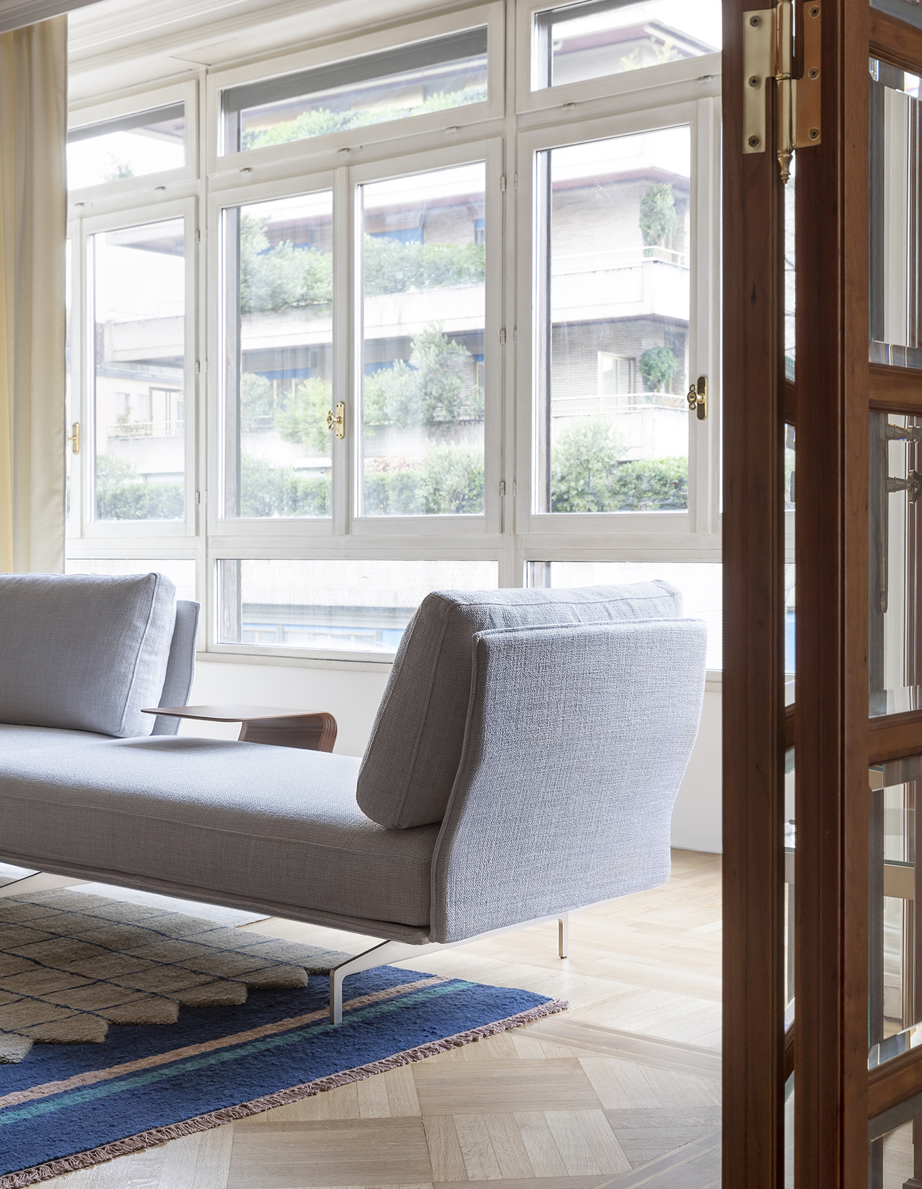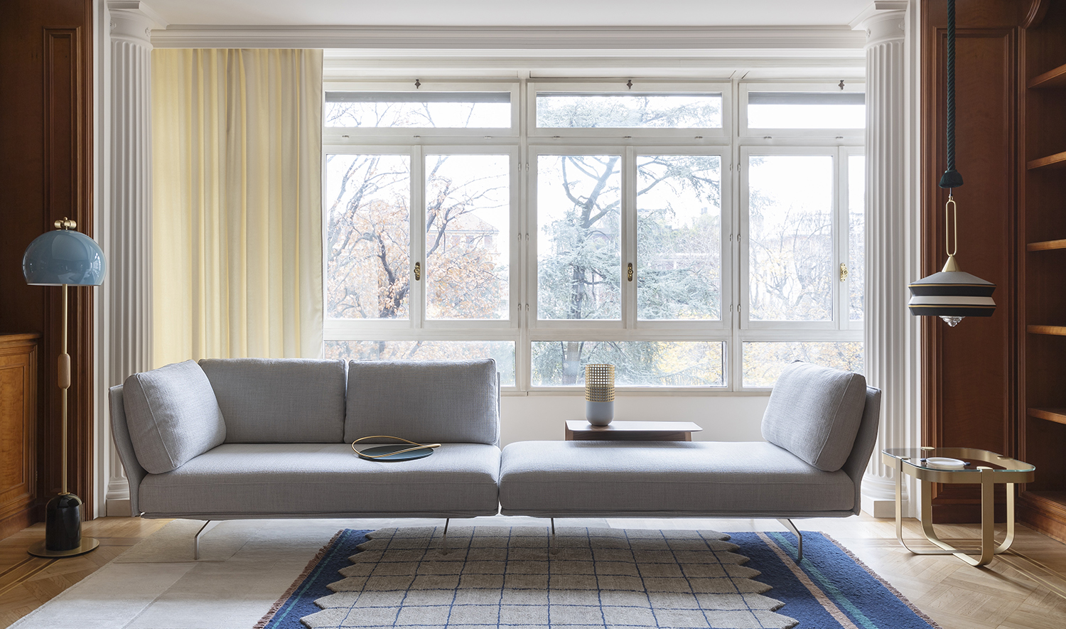 Fluire, adattarsi, creare vuoti, riorganizzare spazi, accogliere e rinnovarsi. Questo è ciò che può fare il nuovo sistema di sedute Avant-Après. Rigoroso eppure leggero, il divano assume configurazioni estremamente interessanti grazie al particolare ed unico sistema bracciolo/schienale che si stacca con un gesto semplice e si può posizionare lungo tutto il perimetro della base. Una danza al ritmo di un prima e dopo che può essere messa in scena ogni giorno, animata dalla voglia di sperimentare. Avant-Après ha un’allure sobria ed un tratto elegante, le sedute sono appoggiate su una base di metallo rivestito in tessuto od in pelle, sollevato da terra su piedi in metallo cromo satinato o verniciato. Raffinati accessori completano il sistema: i tavolini d’appoggio in due diverse dimensioni sono realizzati in legno noce canaletto ed a scelta, la nota calda del legno può essere opzionata anche per il bracciolo. Completamente sfoderabile.