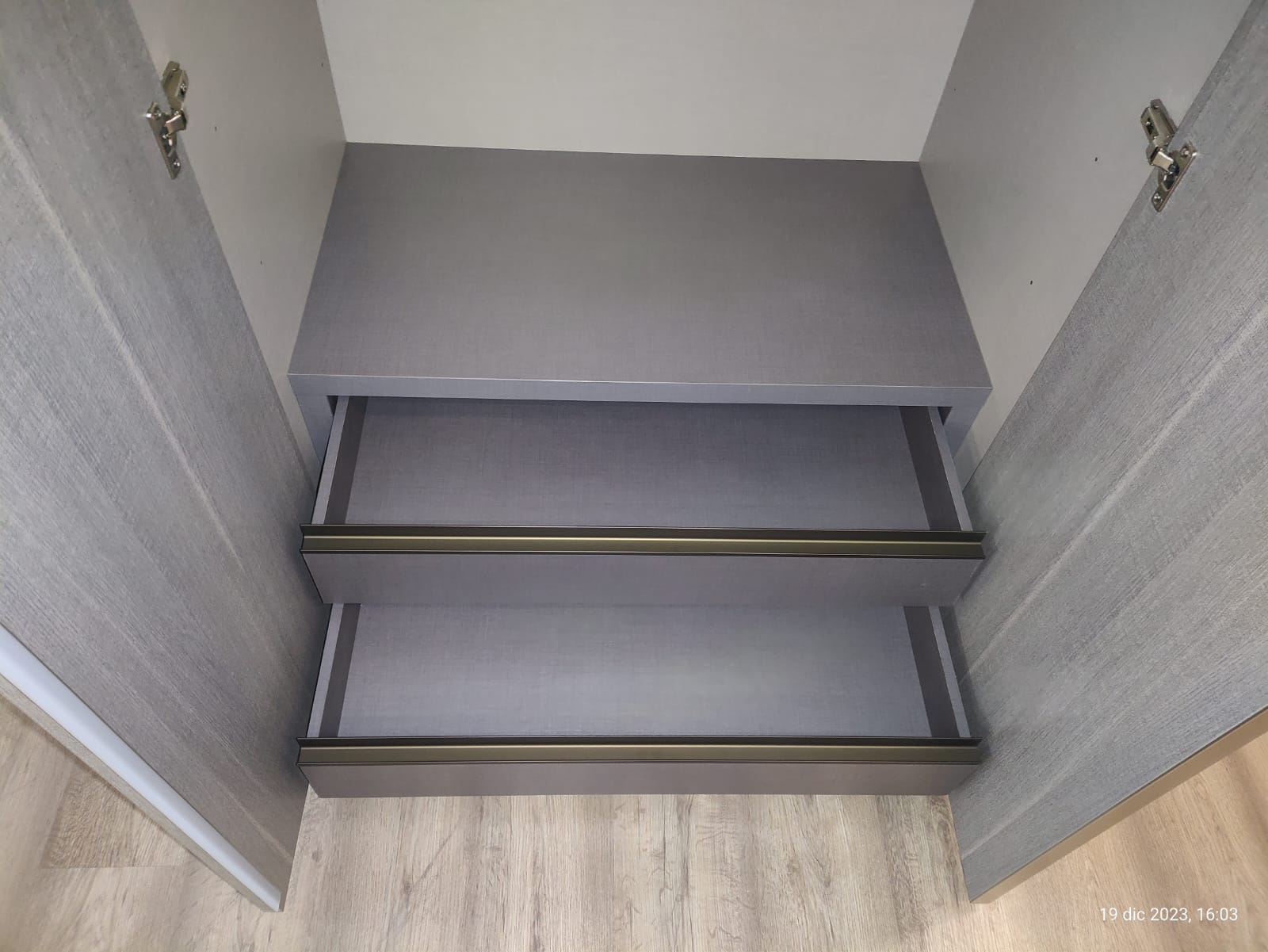 Inoltre, la finitura interna liscia, che riprende il colore esterno, contribuisce a un look uniforme e raffinato. La dotazione interna fotografata completa sicuramente l’offerta, rendendo l’armadio ancora più pratico per l’organizzazione dei tuoi vestiti e accessori.