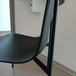 Ombra si caratterizza per l’architettura rarefatta, finemente disegnata: le linee che tratteggiano la struttura in metallo verniciato nero, leggera alla vista ma solida nella funzione, sostengono la scocca che senza continuità accoglie seduta e schienale.