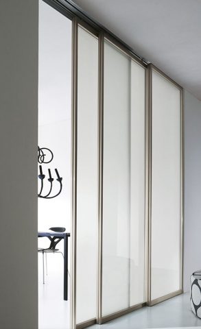 La porta scorrevole LESS è un’ottima scelta per chi cerca un design elegante e funzionale. La sua struttura in cristallo stratificato bianco latte conferisce luminosità e un aspetto moderno all’ambiente, mentre il telaio in alluminio anodizzato garantisce resistenza e durata nel tempo.