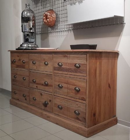 Cassettiera in pino vecchio con nove ampi cassetti.