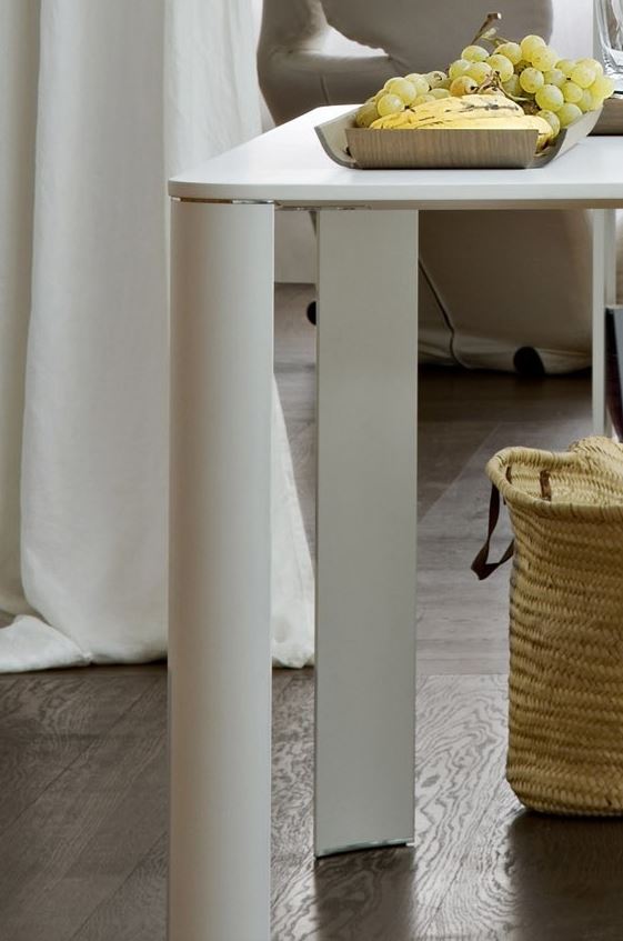Realizzato in laccato opaco color panna con profili cromati, il tavolo BREAK si distingue per la sua linea pulita e la sobria raffinatezza che da sempre contraddistingue le creazioni LEMA.
