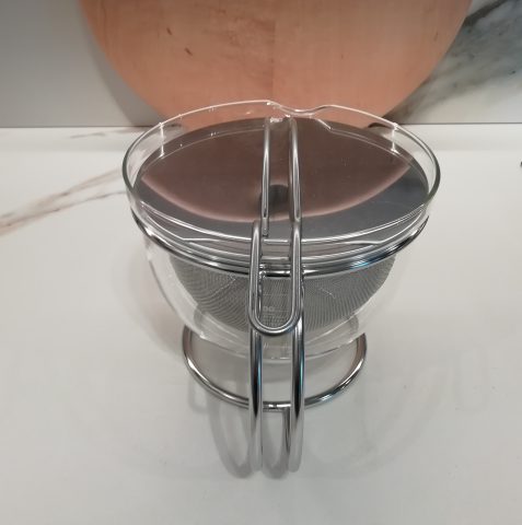 Il colino in acciaio fine consente un’infusione perfetta, mentre il coperchio in acciaio lucido mantiene il calore e si trasforma in appoggio per il filtro una volta terminata l’infusione.