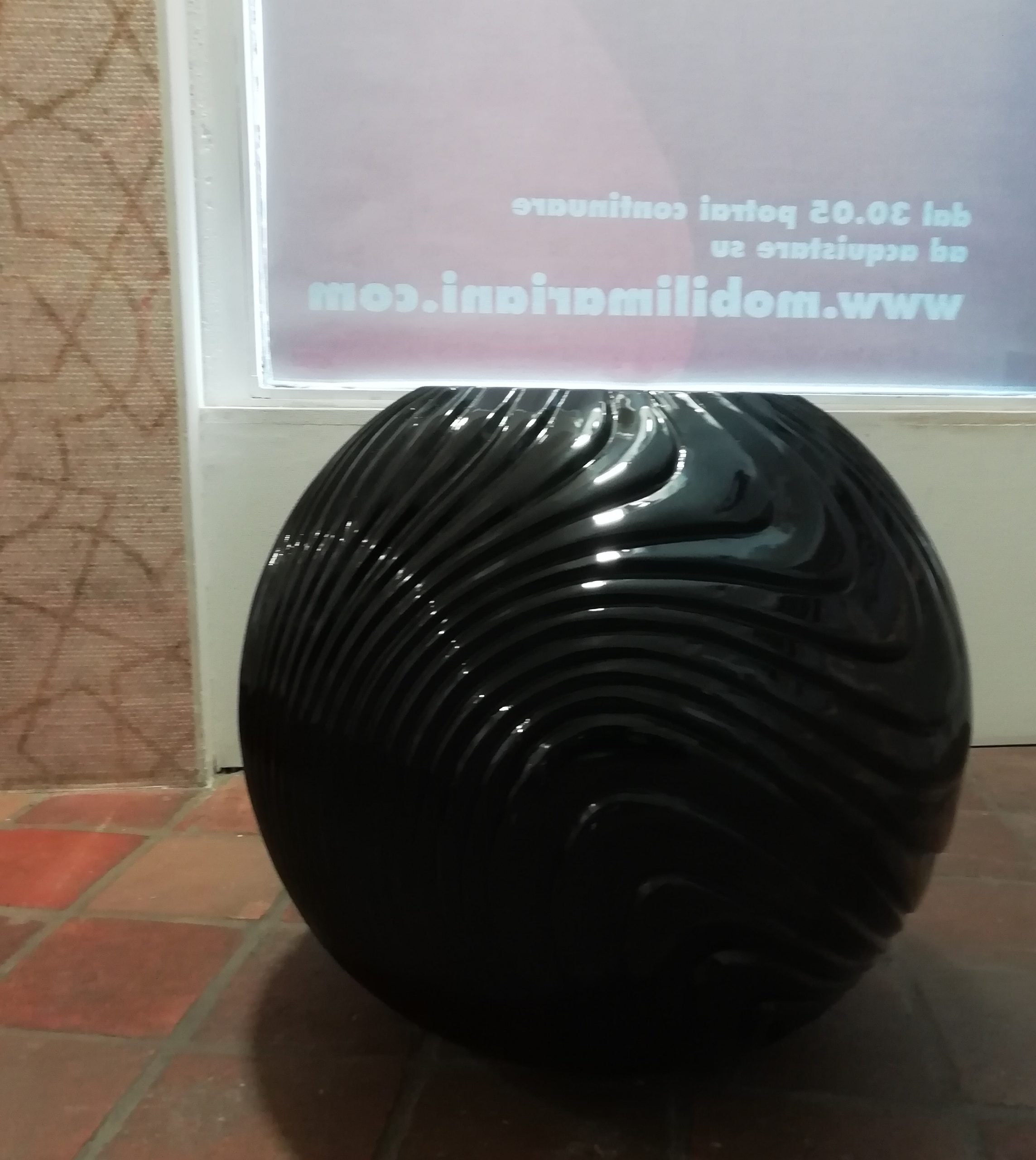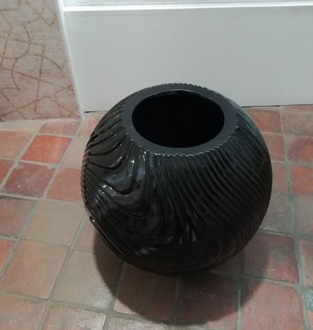 Questo vaso in fiberglass nero lucido unisce eleganza e carattere grazie alla sua forma sferica (Ø 50 x H 45 cm) e alla superficie lavorata con raffinati motivi ondulati. Perfetto per ambienti moderni, sia interni che esterni, è leggero, resistente e capace di valorizzare ogni spazio con un tocco di stile contemporaneo.